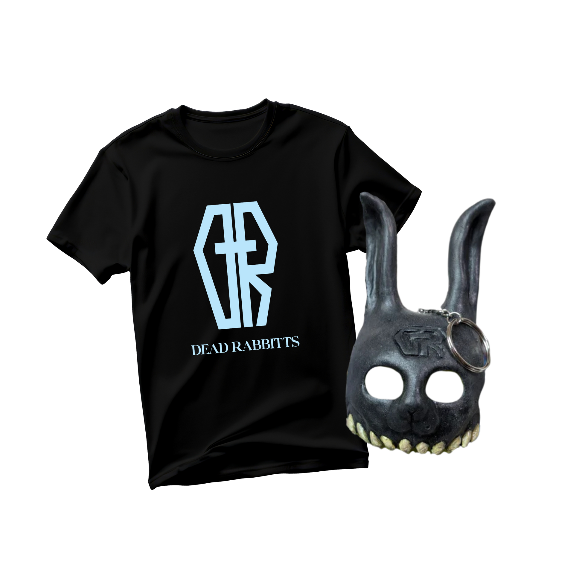 Own a piece of the Dead Rabbitts’ dark lore. This exclusive bundle pairs the official Dead Rabbitts logo tee with the highly-limited Rabubu mini mask collectible — the iconic symbol of Craig Mabbitt’s chaotic alter ego.